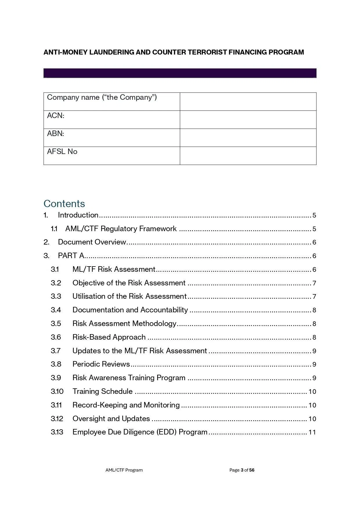 AML/CTF Program Template for AFSL Holders