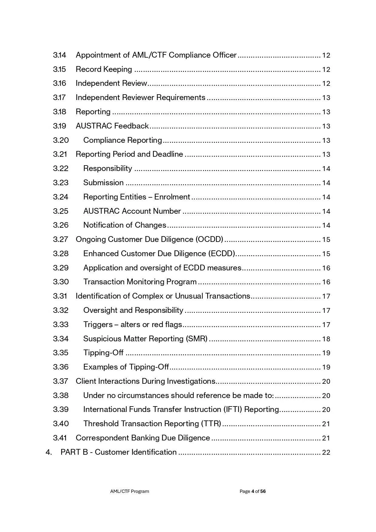 - Part A – risk-based approach, training, independent review & record-keeping