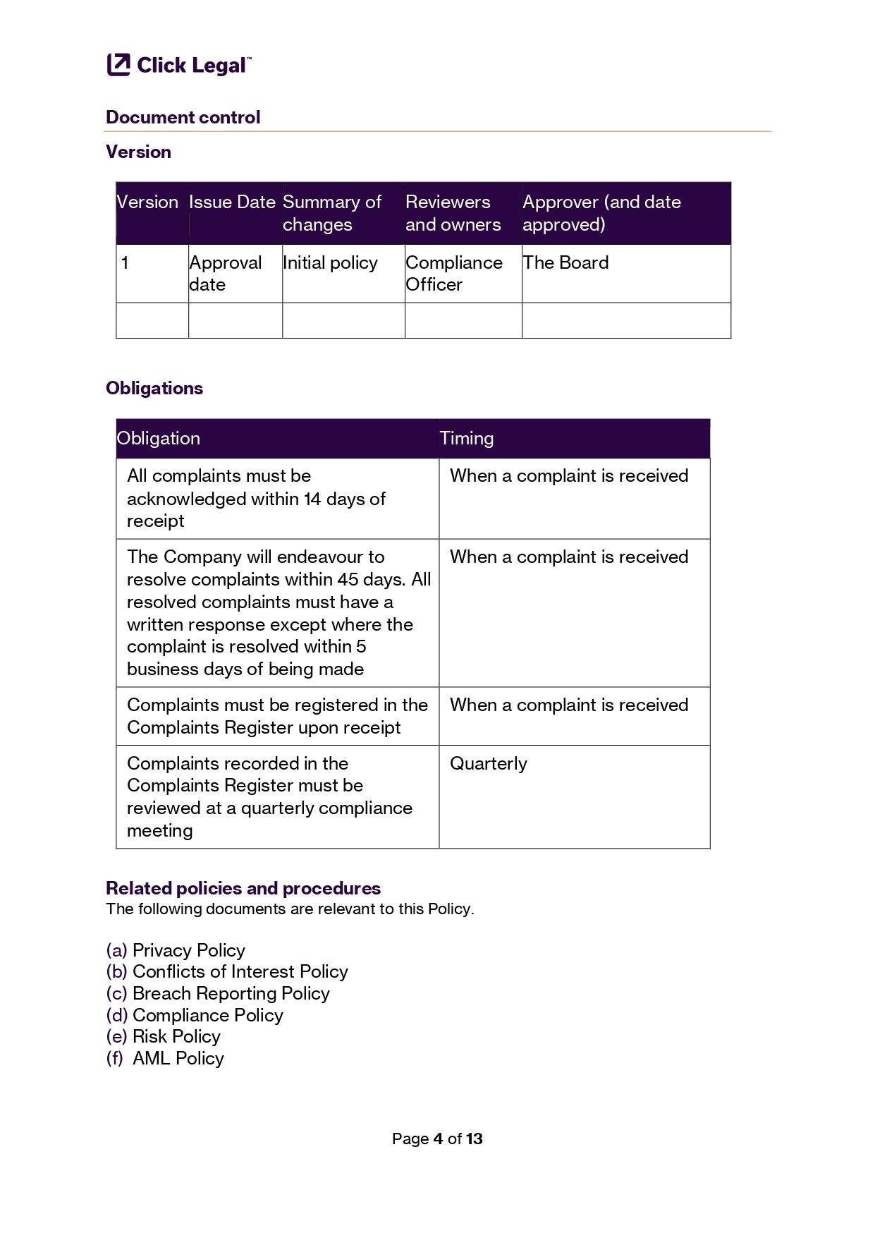 - Hold an AFSL or ACL & need a written complaints handling policy