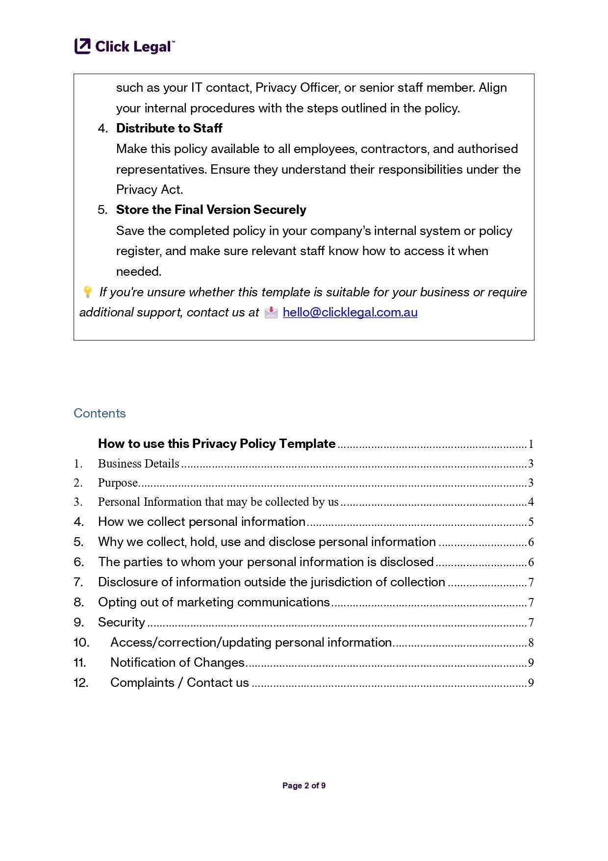 Privacy Policy Template (Australia)